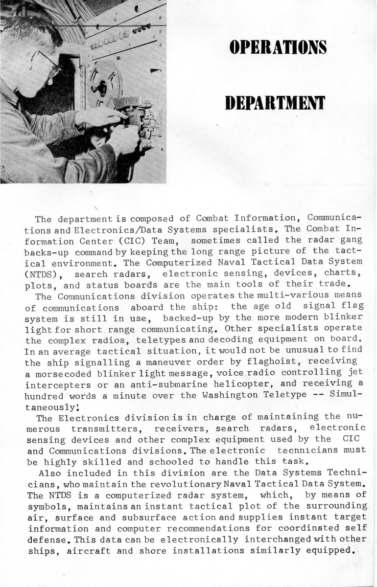 While the pamphlet’s message from the Commanding Officer is signed by CAPT Maylon Scott, first Biddle CO, the commanding officer when I reported aboard was CAPT Alfred Olsen. That Biddle‘s commanding officer was a Captain and not a Commander reflected the status of DLGs at the time.
