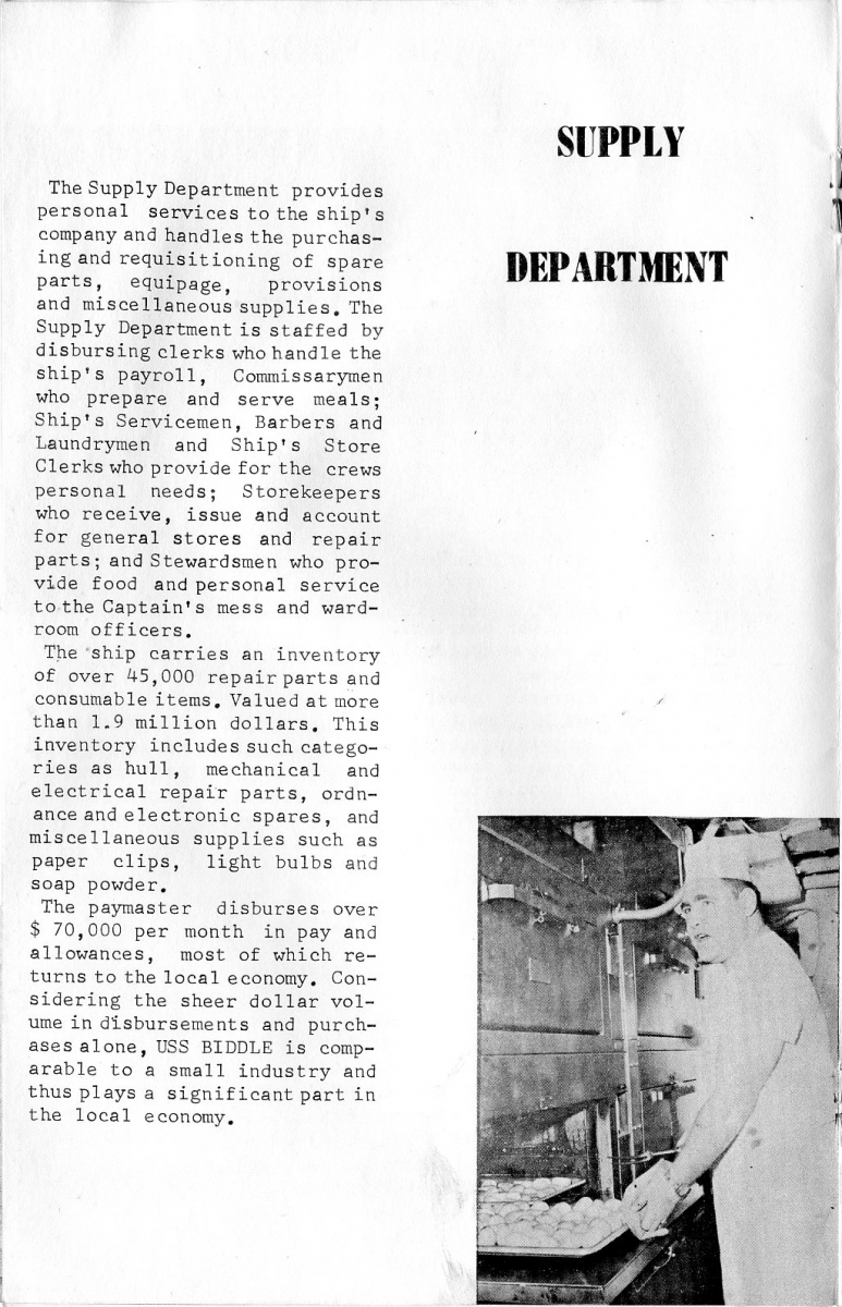 While the pamphlet’s message from the Commanding Officer is signed by CAPT Maylon Scott, first Biddle CO, the commanding officer when I reported aboard was CAPT Alfred Olsen. That Biddle‘s commanding officer was a Captain and not a Commander reflected the status of DLGs at the time.