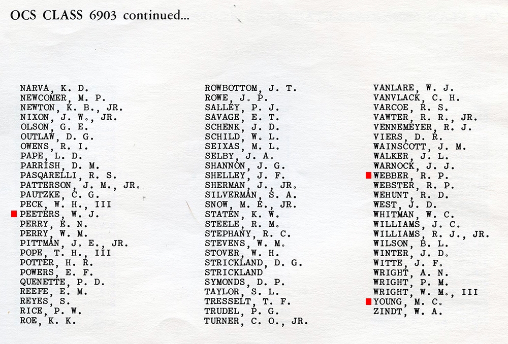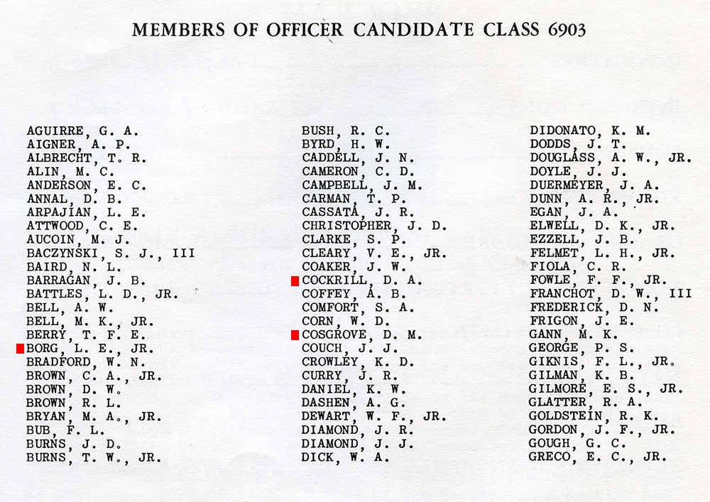 Each of the company cohorts of that class, e.g., A6906, B6906, C6906 . . . started out with 21-26 members, compared to the 14-15 of 6903. And 6906 was also more diverse. Maybe not “looking like America,” but the cohort had five African-Americans and at least two Asians.