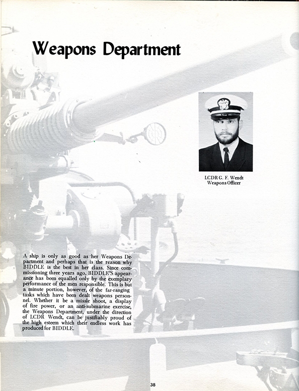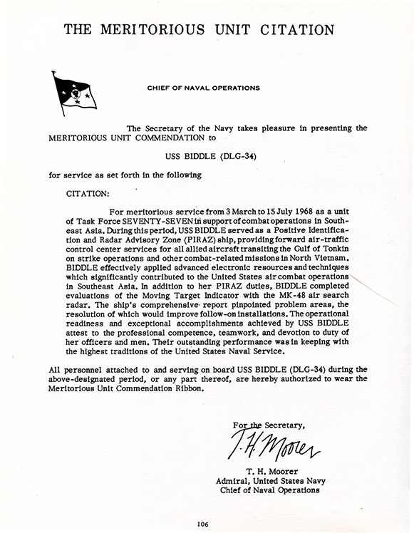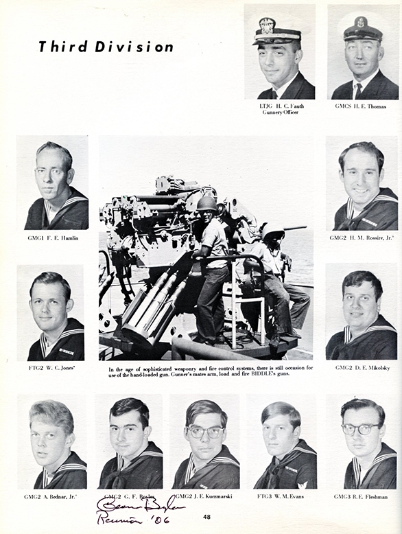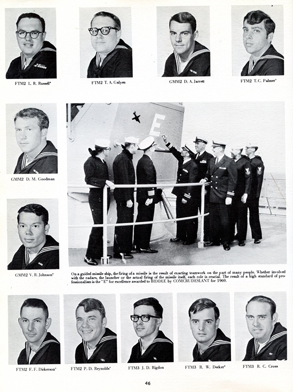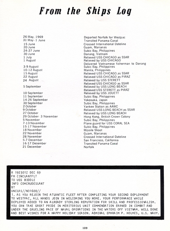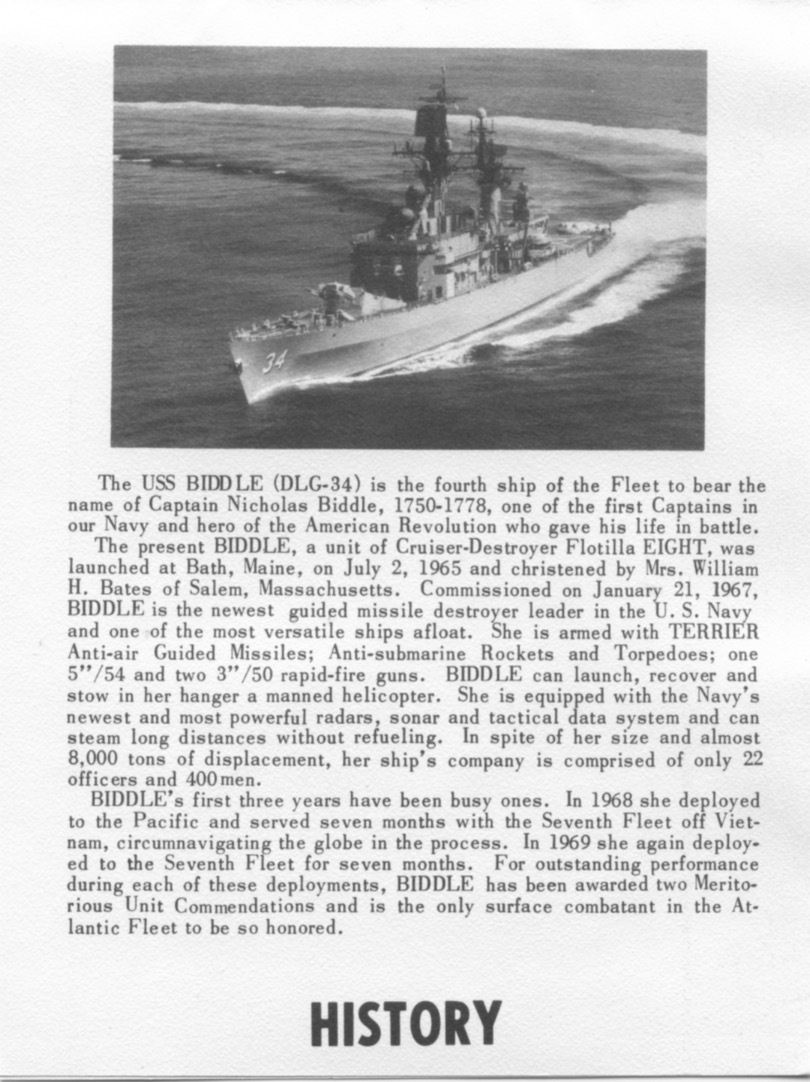 I was so lucky to have great resources with which to complement the blog. Shipmate Jim Treadway’s excellent Hard Charger: The Story of the USS Biddle (DLG-34) was my reference for what happened when and who was involved. Buy it on Amazon!
