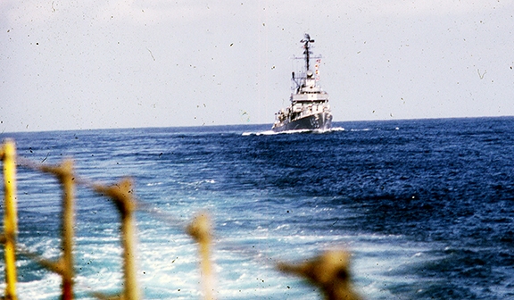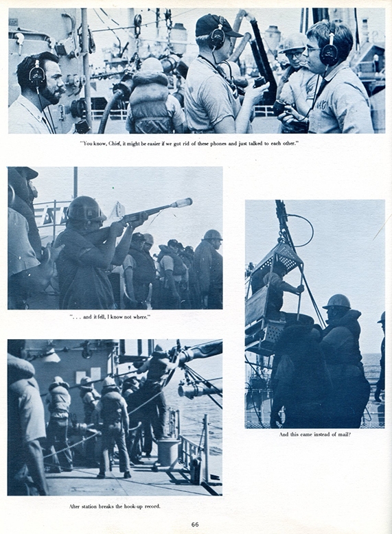 LT Meyers got an early-out. Instead of waiting until we went into port, the Navy wanted him out right away. He was transferred by highline to a supply ship during underway replenishment. Not as dramatic as ENS Graham’s arrival by helicopter hoist, but still . . . .