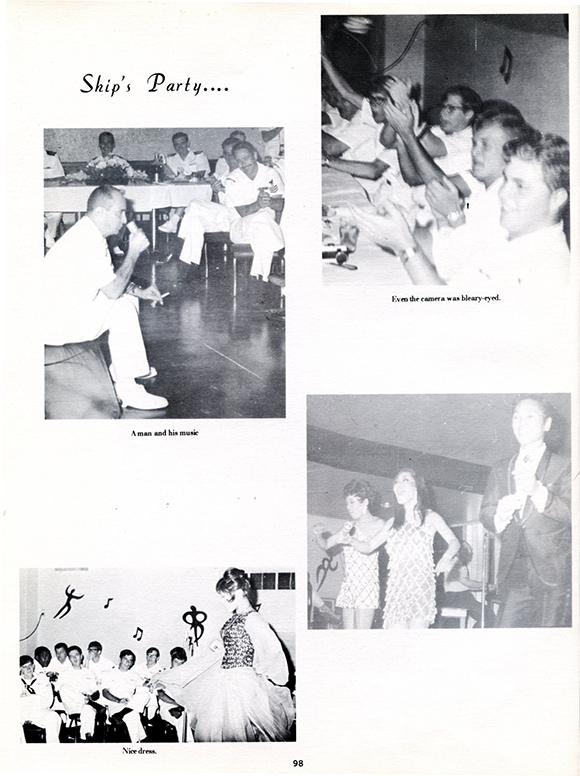We held a ship’s party in Japan and this is another photo from that event. In the rear, paying rapt attention to CAPT Olsen, are LT Berquist (on right) and me.