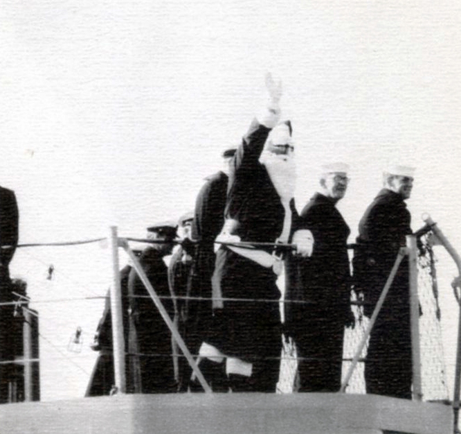 Considering the presence of heavy coats, including CAPT Olsen in his bridge coat, it must have been cold that day. It might well have been the first cold day we had experienced since we left in May.