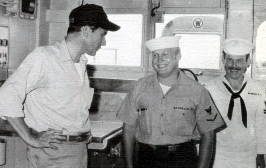 As SSAR, we carried for weeks at a time a helicopter detachment — pilots and crew members, probably also from HC-7. Their job, nearly every day, was to go to points off the coast of North Vietnam and be ready to conduct search-and-rescue missions for US pilots if needed. During our deployment, the US was not conducting bombing missions into North Vietnam, but US planes were conducting reconnaissance missions. I would receive information about the times and routes and would brief the helicopter pilots beforehand. My other interaction with at least one of the pilots, also nearly every day, was to play bridge with them after the movie. (Neither they nor I was on the watch list when Biddle was on the line. They were not ship’s crew. I was 24/7.)