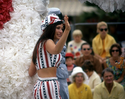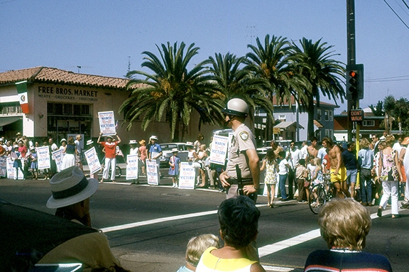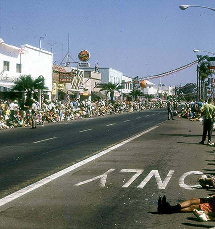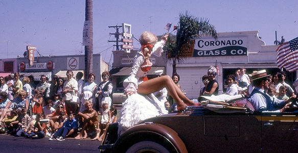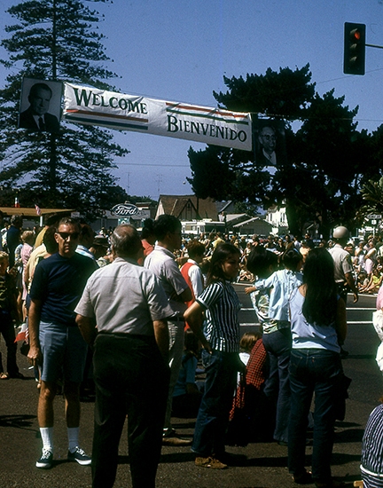Presidents Nixon (circled) and Diaz Ordez in the motorcade on Orange Avenue, Coronado.